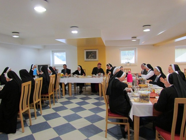 Nakon euharistijskog slavlja mons. Ivan Šaško i fra Ante Crnčević pridružili su se sudionicama Plenarnog vijeća u blagovaoni Duhovnoga centra.