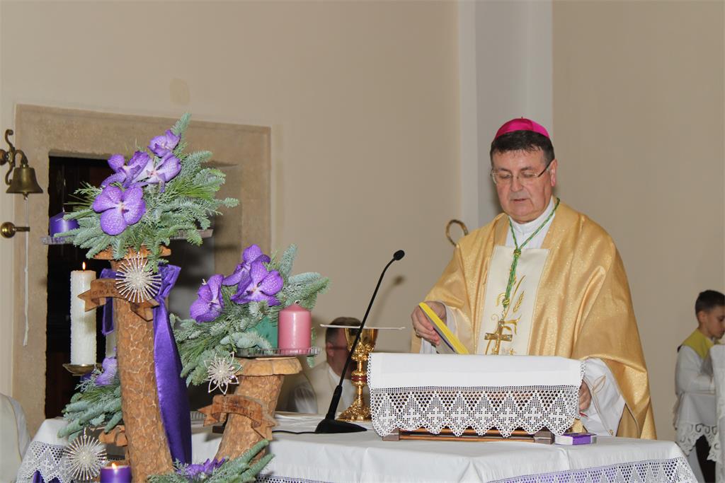 Na početku misnoga slavlja biskup Šaško pozdravio je sve okupljene kazavši: "Župna je zajednica obitelj povezana jačim vezama i od najjačih zemaljskih povezanosti jer živi od Božjega Duha. I kao u obiteljima, i u drugim zajednicama koje čuvaju snagu spomena, tako i u župnoj zajednici - još i puno dublje - slavlja svetih zaštitnika vraćaju na izvorište, prepoznaju darove Božje prisutnosti, obnavljaju snagu i smisao. Pritom je nužan pogled prema prošlomu koji se tamo ne zaustavlja. Naime, povijest je živa onda kada se iz nje rađaju novi obzori. S tim raspoloženjem gledamo i život svetoga Franje, neodvojiv od Krista - radi novih obzora koje nam Gospodin otvara i u došašću nam pomaže da budemo osjetljiviji, pozorniji na malenosti!"