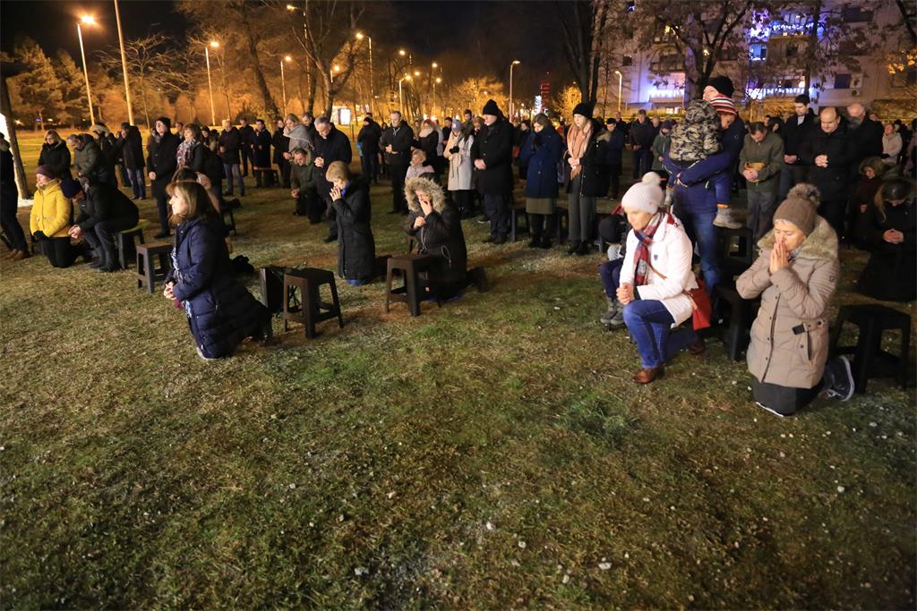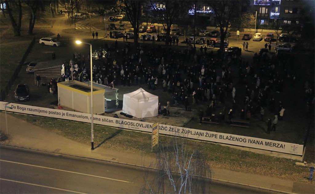 Na križanju Zagrebačke ulice i Zagrebačke avenije na župnom zemljištu na Badnju večer u ponoć okupili su se župljani župe bl. Ivana Merza u zagrebačkom naselju Špansko da slave Isusovo rođenje.