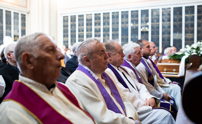 Na kraju svoje homilije kazao je da na mostu na kojemu Krist prihvaća život pokojnika, nismo sami - dočekuje nas zajednica Crkve svetih. Vjera nam daje sigurnost da, poput svetoga Stjepana, prvomučenika, čije ime nosi naš pokojni brat, sada vidi otvoreno nebo i anđele, Gospodina koji ga je pozvao u svećeništvo. Neka mu milosrdno dopusti ući u svoju radost, a nama dijeliti osmijeh koji jača, povezuje, liječi i ponizno služi bližnjima – zaključio je biskup Šaško. Nakon popričesne molitve posljednji pozdrav svom kolegi svećeniku vlč. Stjepanu uputio je mons. Ferdinand Vražić, koji se prisjetio njihova svećeničkog ređenja 1963. godine.