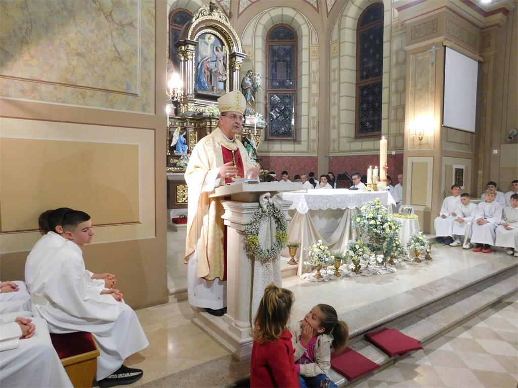 „Siguran sam da svatko od nas pamti ili sada živi neki trenutak u kojemu smo postavili takvo pitanje: Koliko će trajati noć; koliko još do slobode i mira; kada ćemo moći predahnuti? Poznata su nam raspoloženja u kojima se prepoznaje staro, ali i potreba za novim; možda i zbunjenost novim okolnostima, dok nismo sposobni ostaviti proživjelo. U takvome je ozračju bio i dolazak žena na Isusov grob, kako kaže Evanđelje - „još za mraka“. Noć će potrajati, ali dolazi jutro. To su iste žene koje su pod križem zapamtile Isusovu bol, vapaj i njegove riječi; vidjele su zlo, ali i neizrecivo otajstvo ljubavi koja nadilazi svako zlo. To su žene koje su pripremale miomirise i pomasti. Miomirisi su poput prelaska noći u dan. U očima i srcu miješala se tama i svjetlo, a na rukama i u rukama bio im je i miris čudesnih susreta prijateljstva s Isusom i nevjerica da je taj miris mogao biti ugrabljen i odstranjen zadahom smrti. Donošenjem miomirisa te žene govore o nadi, o svome blagom i nježnom, a ujedno tako snažnom suprotstavljanju umiranju. Ne ostane li i u nama od nekoga događaja ili doživljaja samo miris, rekli bismo premalo, a opet dovoljno snažan da nam vrati sigurnost da ljepota nije nestala? Sasvim nam je razumljivo da su žene ostale zbunjene, a zatim prestrašene pred otvorenim grobom bez Isusova tijela i pred pojavom anđela“, rekao je u homiliji biskup Šaško pojasnivši kako je u pitanju anđela: ‘Što tražite Živoga među mrtvima? Nije ovdje, nego uskrsnu!’ vidljiv trag naizgled slabašne vjere, ali snažne ljubavi koja je čuvala nadu.
