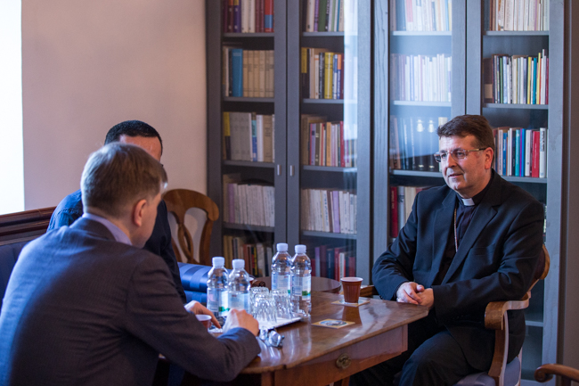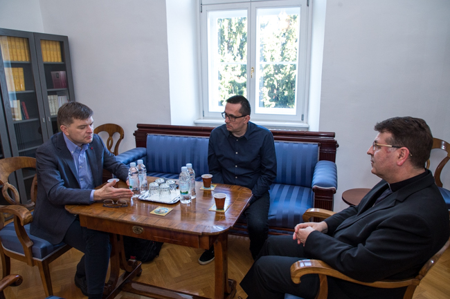 Sugovornici su Biskupa upoznali s održanom tribinom na Hrvatskom katoličkom sveučilištu, kao i s novoobjavljenom monografijom o sv. Faustini Kowalskoj „Uzdam se“, čije autorstvo potpisuje gospodin Górny zajedno s Januszom Rosikońom.