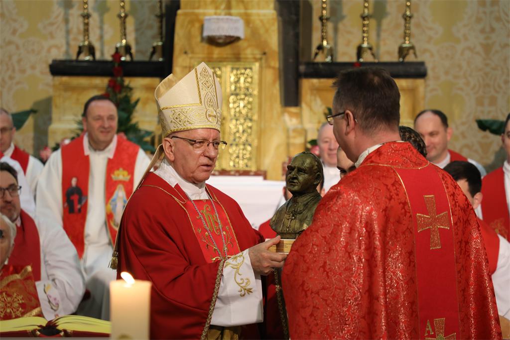 Kazao je kako je Stepinca blaženim proglasio papa Ivan Pavao II.: "Time je taj naš dragi Papa dao puno značenje svojoj izjavi prigodom prvog pastoralnog pohoda Hrvatskoj 1994. godine kad je rekao: 'Stepinac je najsvjetliji lik Crkve Božja u Hrvata.' Nakon što je on bio proglašen blaženim, ista kongregacija [za proglašenje svetih] provela je daljnji propisani postupak s obzirom na Stepinčevu osobu i posvjedočila da je ono što je o njemu utvrđeno u postupku njegova proglašenja blaženim dobilo potvrdu čudom koje samo vjera prepoznaje kao Božji znak da je Blaženikova osoba zavrijedila biti proglašena svetom, a njezino štovanje prošireno na opću Crkvu."