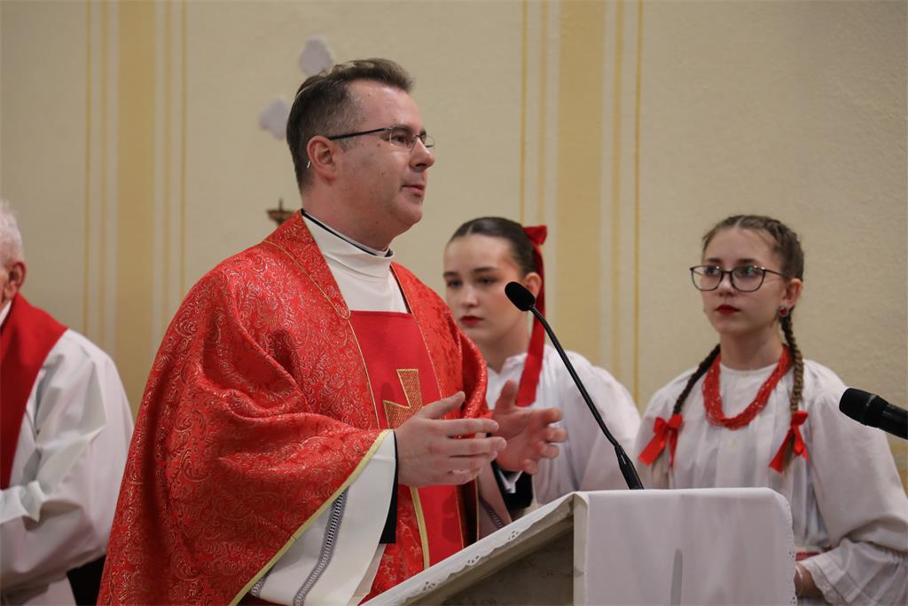 U uvodu u euharistijsko slavlje biskup Škvorčević podsjetio je "da smo ovdje u crkvi u kojoj je tijekom više godina naš blaženi Alojzije uzdizao svoju dušu u Bogu i prepoznavao svoje patnje i trpljenje kao Božji dar. Njegovo trpljenje bilo je veliki ulog za naše dobro."