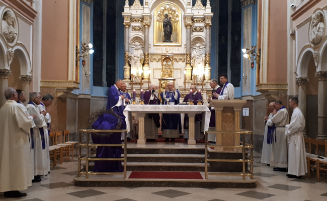 Talijanske biskupe primio je rektor svetišta preč. Domagoj Matošević koji ih je kratko upoznao s poviješću svetišta koje svake godine posjeti između šesto i osamsto tisuća hodočasnika. Biskupi crkvene pokrajine Triveneto predvodili su večernju misu u bazilici svetišta koja je slavljena na talijanskom i hrvatskom jeziku, a propovijedao je nadbiskup Gorizije mons. Carlo Roberto Maria Radaelli.
