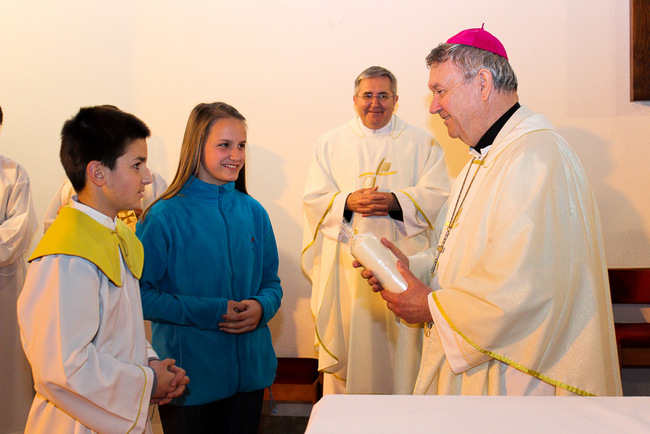 Na kraju svete mise obitelj Hegedić darovala je mons. Josipu Mrzljaku sliku raspetog Krista, autora Daniela Butale, a Petra i Petar Vuković, inače blizanci koje je mons. Mrzljak krstio, zavjetnu svijeću s logom svetišta. Nakon toga su okupljeni vjernici i svećenici, predvođeni varaždinskim biskupom, pošli u procesiji oko zavjetnog kip svetog Josipa.