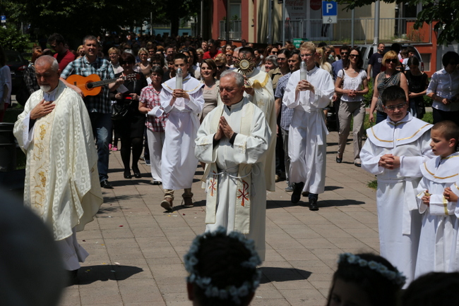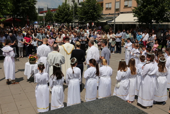 Nakon mise župljani su se procesiji s Presvetim Oltarskim Sakramentom uputili ulicama Župe zaustavljajući se na četiri postaje. Uz zajedničku molitvu i pjevanje euharistijskih pjesama procesiju su na poseban način uljepšali prvopričesnici u bijelim haljinama sipajući latice cvijeća. Iznoseći Presveti Oltarski Sakrament na ulice slavili su otajstvenu prisutnost Isusa Krista u euharistiji i na taj način sebi i svim ostalim vjernicima osvijestili ono što znaju, a to je da je u euharistiji i po pričesti živi Isus Krist.