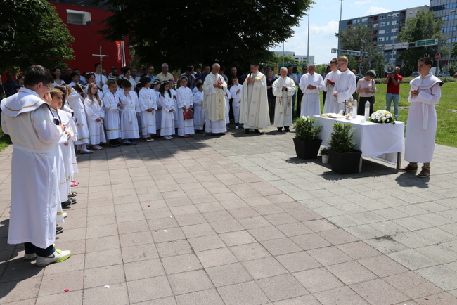Blagdan Tijelova svečanim euharistijskim slavljem i procesijom proslavili su župljani Župe bl. Ivana Merza u Zagrebu – Špansko.