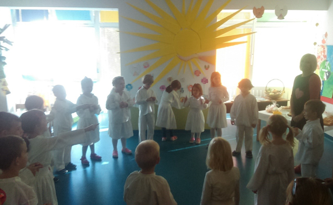 Program je verificiran od Ministarstva znanosti i obrazovanja i Agencije za odgoj i obrazovanje te ga provode dvije odgojiteljice u vjeri, Suzana Bilankov i Irena Greb, koje u svojoj mješovitoj odgojno skupini nazvanoj „Zrakice“ na primjeren način i u suradnji s roditeljima te župnom zajednicom prenose poruke Evanđelja.