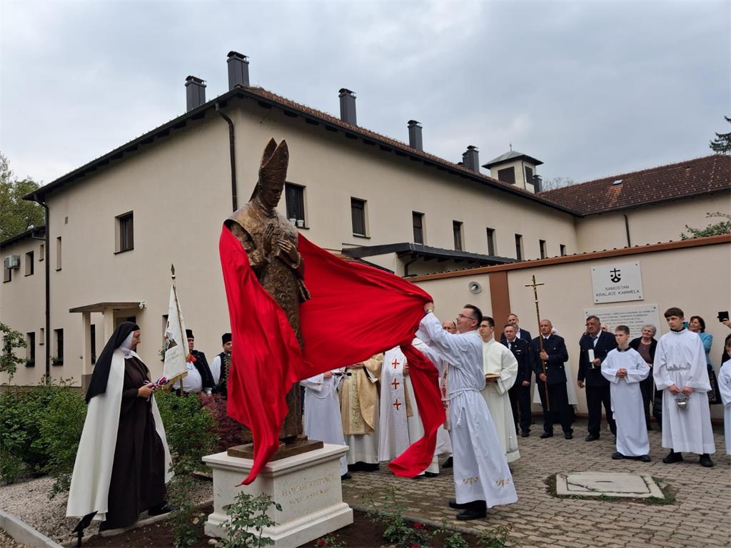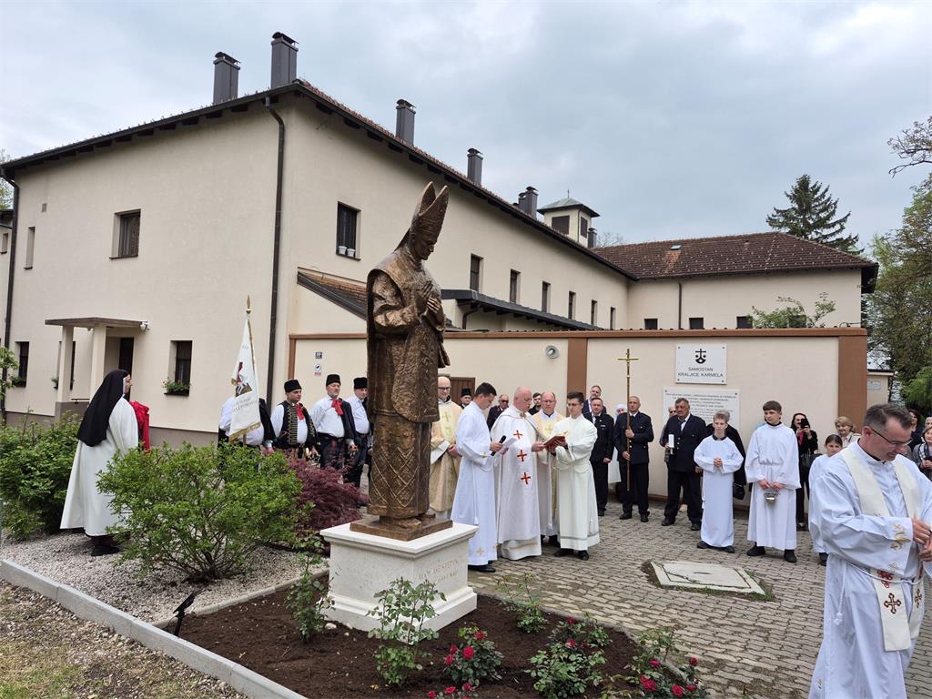 "Na današnji dan, 15. travnja 1944. slavio je naš blaženik prvu misu u novosagrađenom Karmelu upravo u toj misnici i albi koju je umjetnički izradio akademski kipar Tomislav Kršnjavi. U znak zahvalnosti sestre su, uz pomoć prijatelja i dobročinitelja Karmela, dale podići ovaj kip na čast bl. Alojziju Stepincu", istaknuo je župnik.
