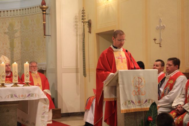 Vlč. Škender propovijedao je o izabranju blaženog Alojzija. On je bio izabran za učenika Isusa Krista, znajući da to nije lak put, ali je dobar i ispravan put te također nije nemoguć put, jer je Bog s njime. U tom smislu propovjednik je povukao paralelu između Isusa Krista i bl. Alojzija. Ono što je zajedničko obojici, to je odnos s nebeskim Ocem. U životu Isusa odnos sa svojim Ocem iz kojeg crpi snagu i mudrost za svoje poslanje vidljiv je tijekom cijelog njegovog života, a možda najbolje u njegovim najtežim trenucima: u muci na križu, kada je zlostavljan i fizički i psihički od svojih mučitelj. Ali u toj teškoj situaciji, Isus ne gleda one koji mu nanose bol i zlo, ne gleda ni u sebe, svoj jad i svoju bol nego gleda u Oca i razgovara s njime, iskreno i konkretno Mu vapi, moli Ga.