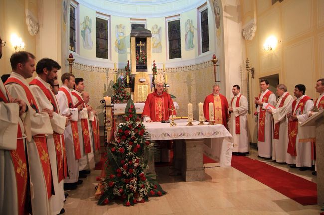 Svečano slavlje predvodio je mons. Egidije, a propovijedao je vlč. Tomislav Škender, svećenik Zagrebačke nadbiskupije i član austrijskog kolegija. Mons. Egidije, uvodeći vjernike u euharistijsko slavlje, na početku svete Mise naglasio je, govoreći o svecima, da je bl. A. Stepinac čovjek koji se odlučio za Isusa te na taj način potaknuo sve vjernike da se uvijek, svaki dan, u svome svakodnevnom životu odluče za Isusa. Nastavljajući se na tu misao, biskup je rekao vjernicima kako je svaki čovjek na svoj način izabran od dragoga Boga.