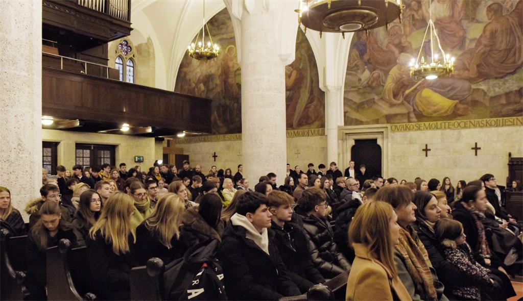 Učenici Gornjogradske gimnazije i Gimnazije Tituša Brezovačkog napunili su crkvu sv. Marka 22. prosinca 2025. svojim prisustvom, pjesmom i molitvom.