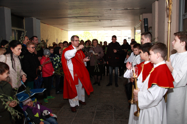 Župa bl. Alojzija Stepinca na Trnjanskoj Savici svečano je proslavila Cvjetnicu - Nedjelju Muke Gospodnje. Župljani su se okupili oko Pastoralnoga centra pred kojim je župnik Antun Vukmanić blagoslovio grančice, a zatim se u svečanoj procesiji uz pjesmu zbora i puka krenulo naseljem do OŠ Jure Kaštelana gdje je u predvorju slavljena sveta misa i pjevana Muka po Luki.