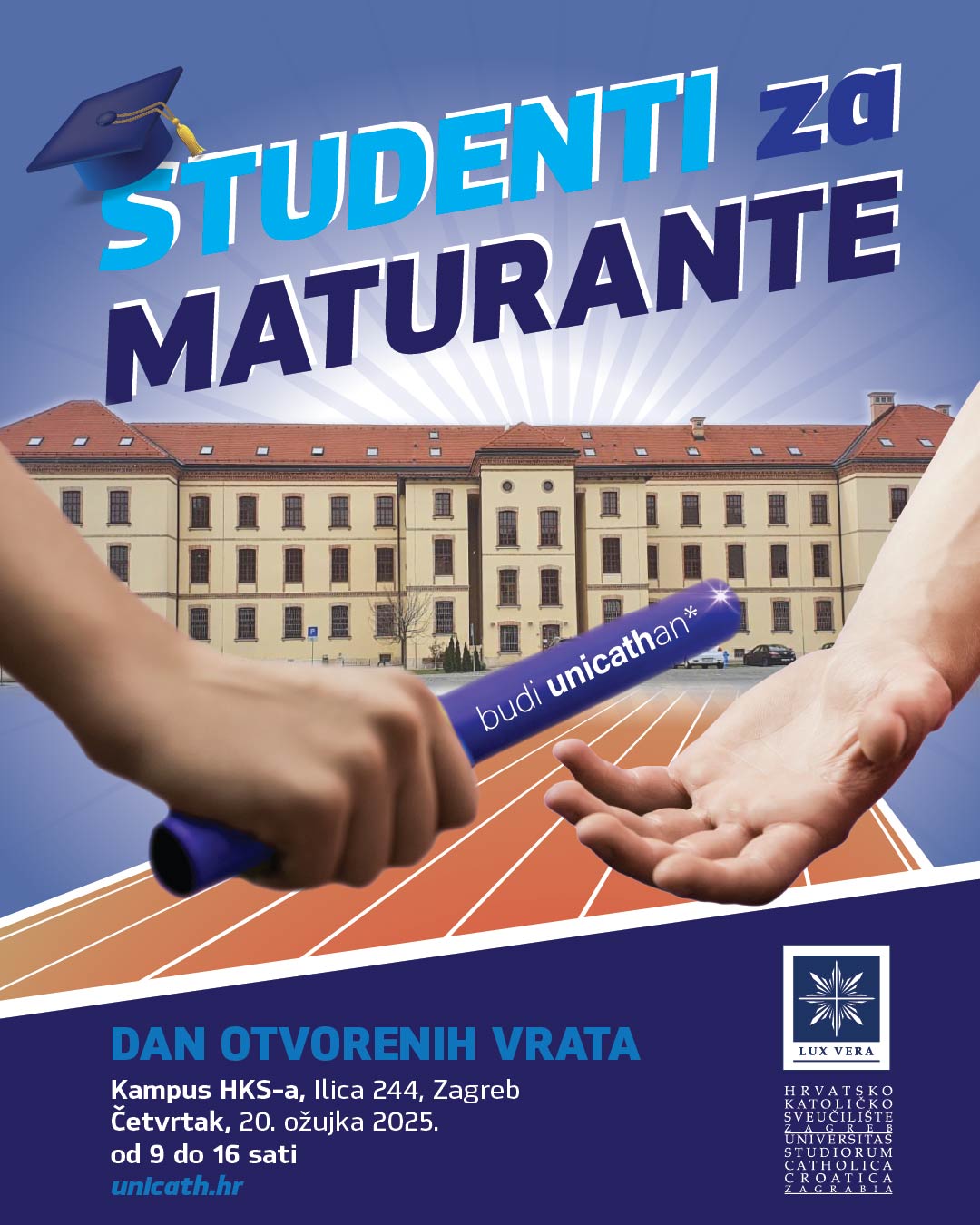 Hrvatsko katoličko sveučilište u četvrtak 20. ožujka 2025. od 9 do 16 sati s radošću otvara vrata svojih predavaonica, laboratorija, dvorana, ureda i s veseljem očekuje posjetitelje na Danu otvorenih vrata Hrvatskog katoličkog sveučilišta.