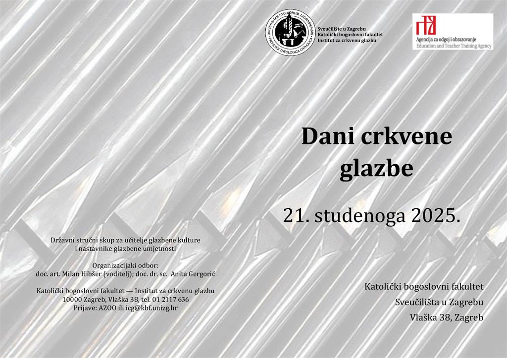 Stručni skup "Dani crkvene glazbe" održat će se 21. studenoga u prostorijama Katoličkoga bogoslovnog fakulteta u Zagrebu, Vlaška 38.