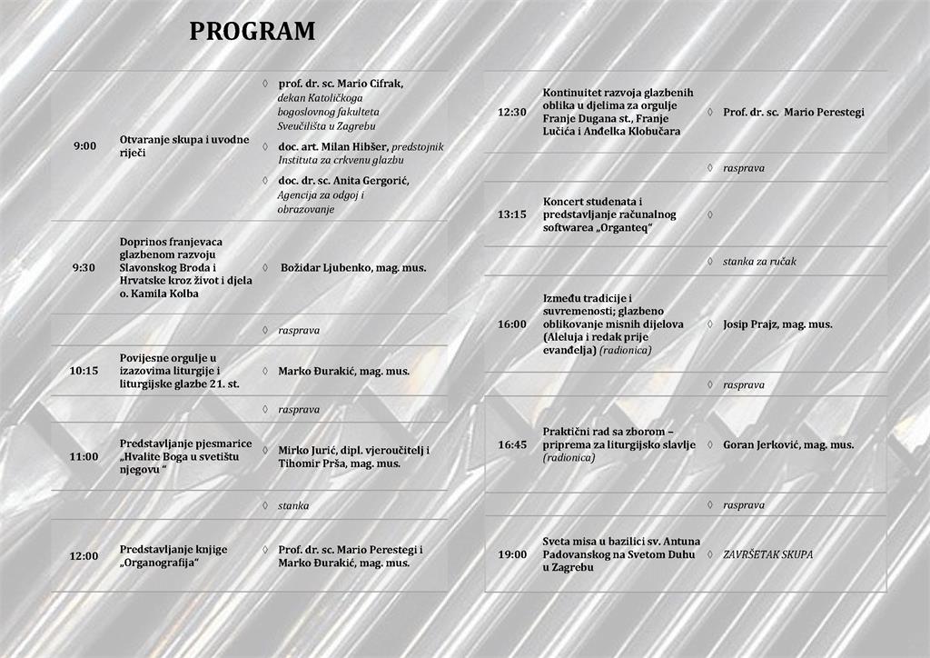 Prijave za stručni skup primaju se prijavom na aplikaciju AZOO za osobe u tom sustavu, a za sve ostale u Tajništvu Instituta za crkvenu glazbu do 20. studenoga (e-pošta: icg@kbf.unizg.hr; tel.: 01/2117 636).