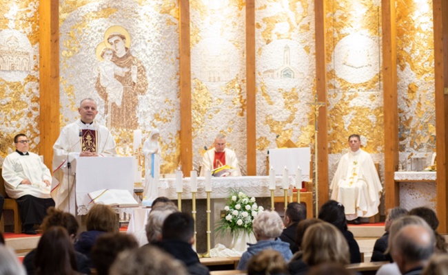 Uvodeći u misno slavlje mons. Tomislav Subotičanec spomenuo se naglo preminulog župnika Antuna Sentea te okupljene vjernike potaknuo na molitvu za dušu dragog i preminulog župnika.