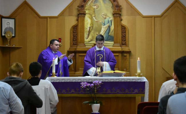 Na početku slavlja rektor Sjemeništa zaželio je dobrodošlicu vlč. Marku i izrazio zahvalnost što je, uspkros mnogih župničkih obveza, pronašao vremena da pohodi sjemenišnu zajednicu. Župa Đurđevac je prošle godine, u kolovozu mjesecu, vrlo lijepo ugostila Rektora sjemeništa prigodom godišnjeg župnog klečanja te je već tada dogovorena suradnja kroz dva projekta: Susret ministranata Đurđevačkog dekanata u sjemeništu te dolazak vlč. Raca u službi svjedočenja duhovnog poziva sjemeništarcima što se je i ostvarilo kroz protekle tjedne.