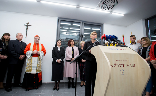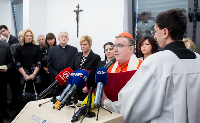 s. Jelena Lončar, Predsjednica RH i kardinal Bozanić, koji je kazao kako je ova Kuća djelo dobrih ljudi. Ima među nama, u hrvatskom narodu, u Zagrebu puno dobra i to treba neprestano isticati. To trebamo prepoznati i od toga živjeti – rekao je Kardinal. Neka ova Kuća, nastavio je, bude poziv svima nama da prepoznamo dobro u ovom društvu i da o tom dobru govorimo.