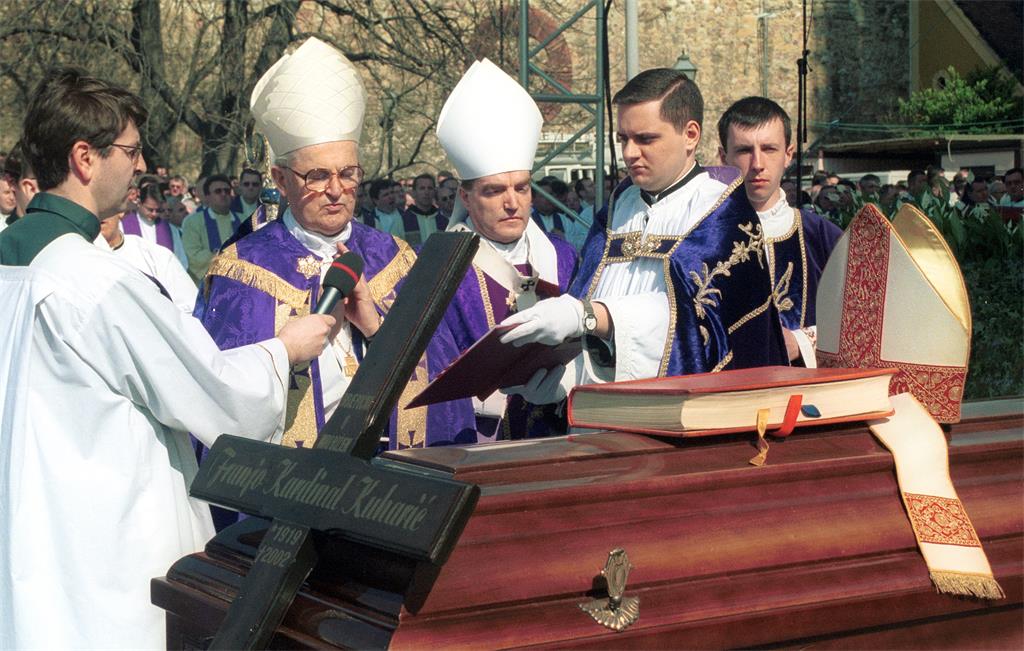Shvaćamo da Kardinal i sve što je njegova osoba i služba značila za hrvatske vjernike, za Katoličku crkvu i za ljude koje je susretao ne može stati u ovaj lijes; da ne može stati u crkvu omeđenu zidovima; da ne može stati na ovaj trg, niti to može posjedovati zemlja. Kako li je samo dirljivo vidjeti vjernike oko svoga Pastira koji ne prestaje biti privlačna točka i sigurnost hodočašća na zemlji. Mi smo danas ono što njega raduje, za što je molio, za što se žrtvovao i trpio, za što je kucalo velikodušno srce vjernika, svećenika, biskupa i domoljuba. Ovdje okupljeni u posebnu smo zajedništvu sa Svetim Ocem koji nam je očitovao svoje „prisno dioništvo u boli zbog odlaska cijenjena i velezaslužna Pastira“ i koji je poslao svoga izaslanika u osobi kardinala Josefa Tomka.