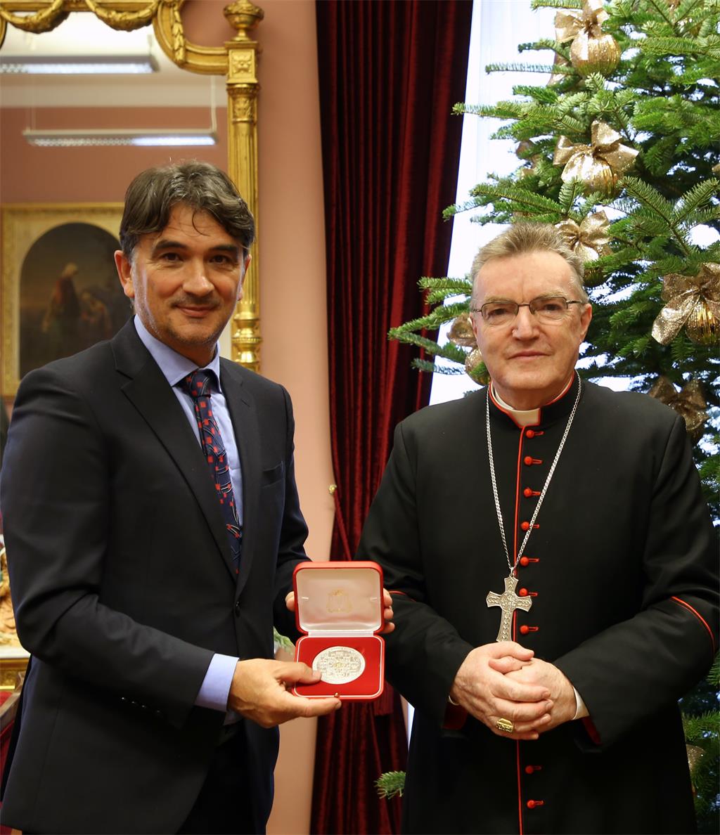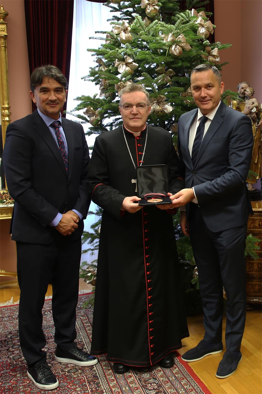 Predsjednik Kustić i izbornik Dalić kardinalu Bozaniću na dar u znak zahvalnosti za potporu reprezentaciji predali su brončanu medalju sa Svjetskoga nogometnoga prvenstva u Kataru, istovjetnu medalju kakvu su dobili i hrvatski reprezentativci. Kardinal Bozanić na dar je dobio i dres hrvatske nogometne reprezentacije s imenom kapetana naše nogometne reprezentacije, Luke Modrića.