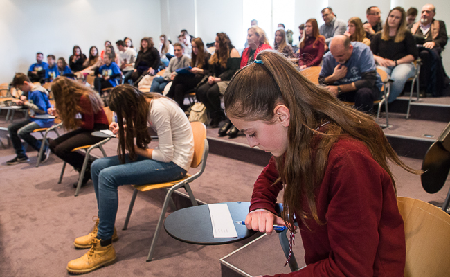 U 10 sati započelo je četrdesetpetominutno pisanje testova, nakon čega su učenici u pratnji prošetali do Gornjega grada gdje su posjetili crkvu svetoga Marka i crkvu svete Katarine te Kamenita vrata, nakon čega su se vratili na osvježenje i okrepu, kad je izvješena i privremena ljestvica rezultata. Svakako valja istaknuti dva najbolje napisana testa (maksimalan broj ostvarenih bodova), koje su napisale učenice Karla Movre iz Gimnazije Karlovac i Marija Babić iz OŠ Dragutina Tadijanovića iz Zagreba.
