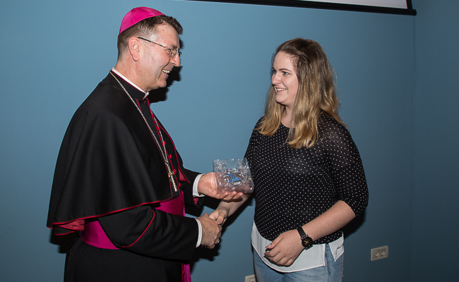 U 14 sati uslijedilo je proglašenje pobjednika, a njih je objavila predsjednica Povjerenstva za nadbiskupijsko natjecanje iz vjeronauka. Nagrade je svim sudionicima dodijelio mons. Ivan Šaško, pomoćni biskup zagrebački, jer svi su učenici na ovoj razini i pobjednici, odnosno predstavnici svojih županija. Prva tri mjesta osnovnih i srednjih škola dobili su i posebne nagrade kojima će obogatiti školsku knjižnicu i oplemeniti zidove svojih škola.