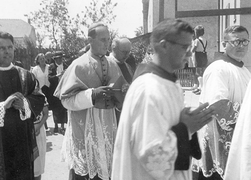Nadbiskup Alojzije Stepinac s vjernicima prigodom podjele sv. Potvrde u Kustošiji 16. svibnja 1943.