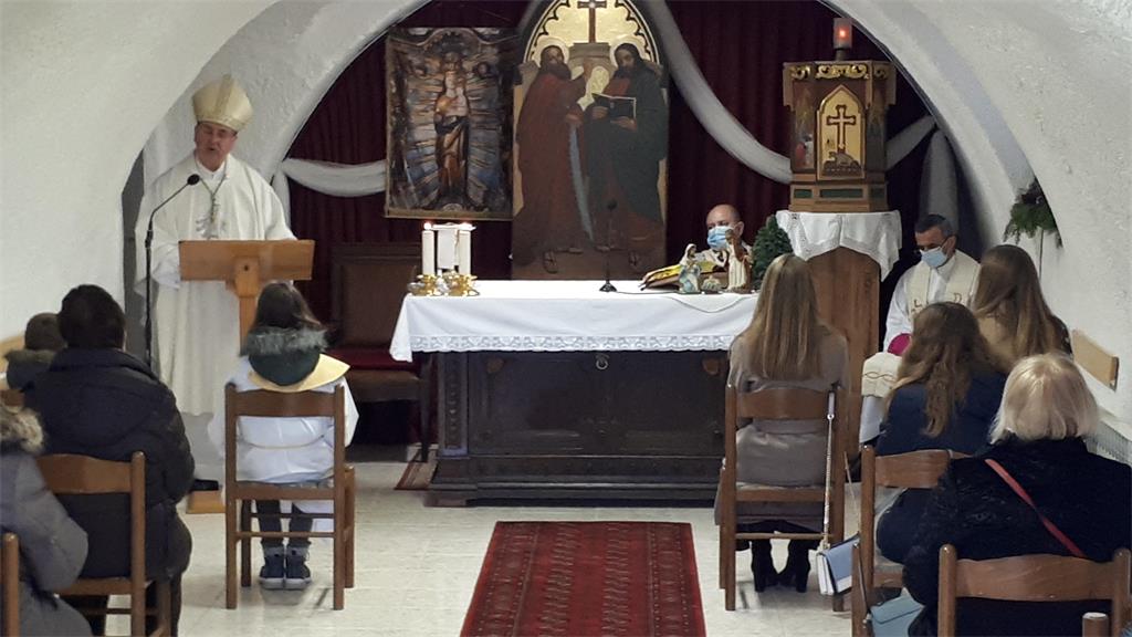 Braćo i sestre, u vjerničkoj radosti Božjega utjelovljenja, prenoseći vam čestitke našega nadbiskupa, kardinala Josipa, čestitam vam Božić! Čestit Božić cijeloj župnoj zajednici, predvođenoj župnikom, velečasnim gospodinom Josipom (Đurbekom), a s nama ovo zajedništvo slavlja dijeli i prof. fra Ante (Crnčević).