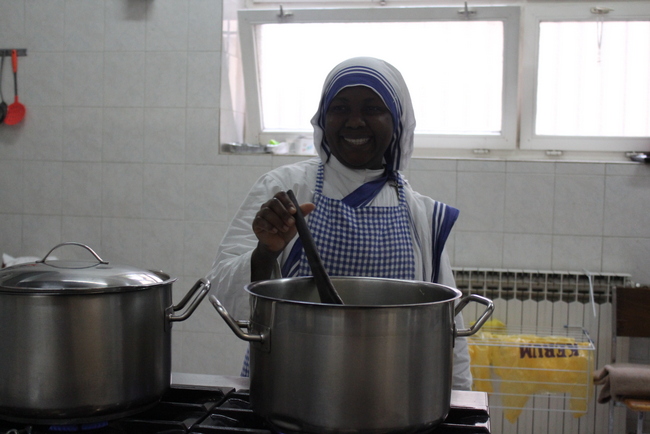 U podne je molitva pa ručak, poslije kojega nakratko odmore i u ruke uzmu kakvo duhovno štivo o životu svetaca. U 14.30 sati počinje popodnevni apostolat, a sat vremena kasnije otvara se pučka kuhinja u kojoj se svaki dan podijeli oko 150 obroka. Izuzetak je četvrtak kada sestre cijeli dan provode u molitvi pred Presvetim, dok je nedjelja najnapornija jer su mnoge pučke kuhinje zatvorene pa se broj podijeljenih obroka zna popeti i do 200.
