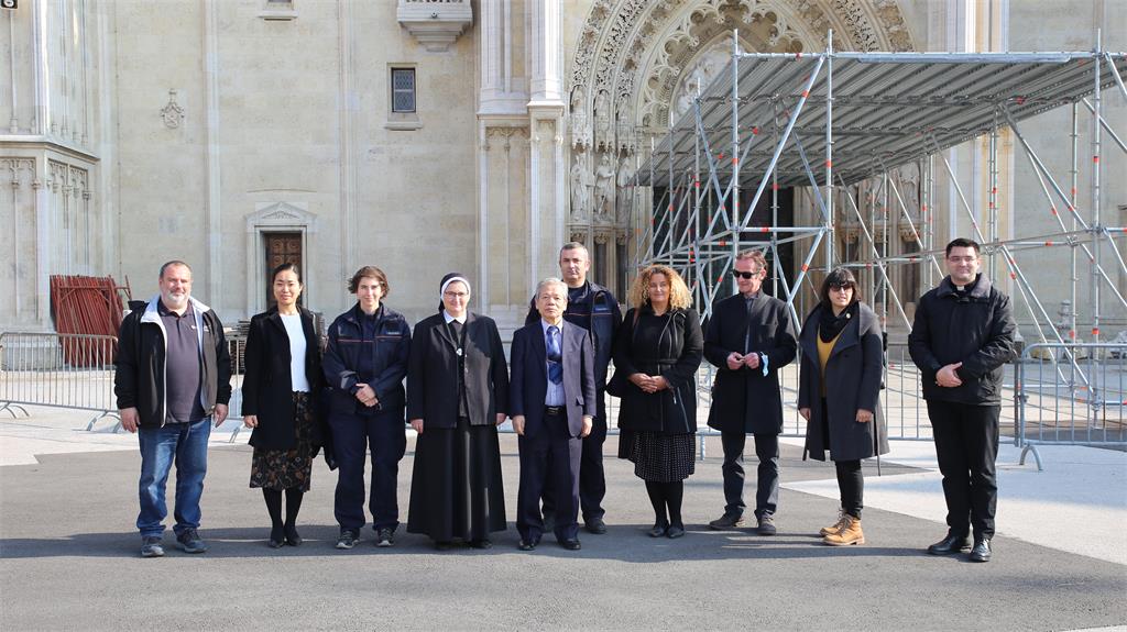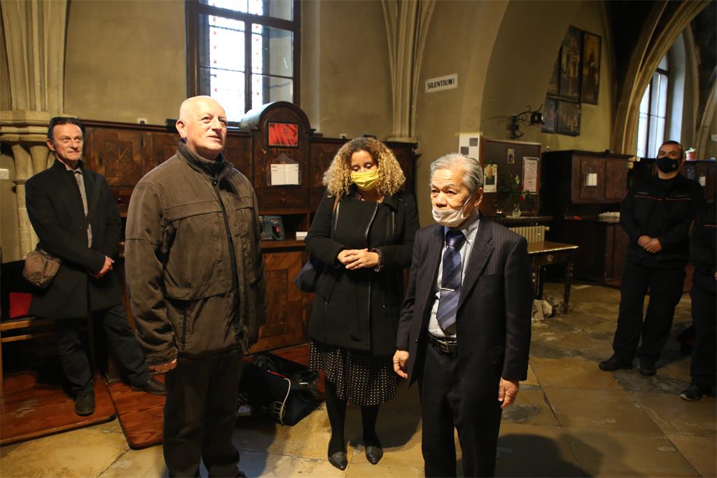 Challenge Co. Kazuo Sasaki, prva tajnica Veleposlanstva Japana u Republici Hrvatskoj Chie Oshima, glavna tajnica Hrvatskog povjerenstva za UNESCO i voditeljica Službe za UNESCO Rut Carek sa stručnim suradnicima te dipl. ing. Tomislav Fiket iz Seizmološke službe, a dočekali su ih potpredsjednik Odbora za obnovu katedrale mons. Zlatko Koren i pročelnik Tiskovnog ureda preč. Tomislav Hačko. Povod posjeta bila je donacija seizmičke opreme, tj.