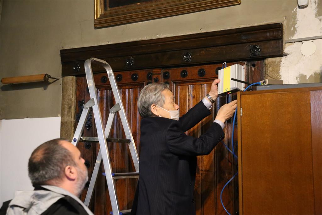 Gospodin Kazuo Sasaki izjavio je prilikom posjeta katedrale kako je ovaj uređaj napravljen na poticaj Japanske meteorološke agencije koja je osmišljavala alarmni sustav protiv katastrofa. Uređaj detektira prvi potresni val nekoliko sekundi prije nego što ga ljudi mogu osjetiti, epicentar potresa te njegovu jačinu. Te informacije šalje korisnicima koji imaju uređaj (poput vrtića, škola, privatnih tvrtki i sl.), kako bi spremni dočekali potres. Na taj način smanjuje se panika među pogođenima potresom.