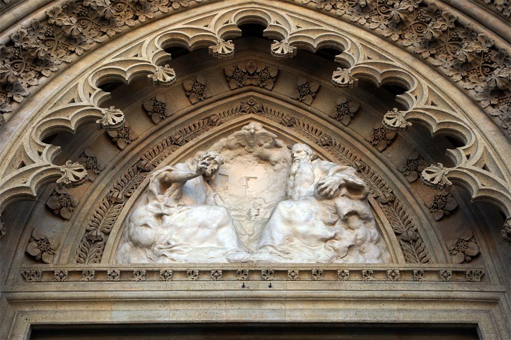 Točno iznad ulaznih vrata u Katedralu nalazi se prikaz Presvetoga Trojstva.