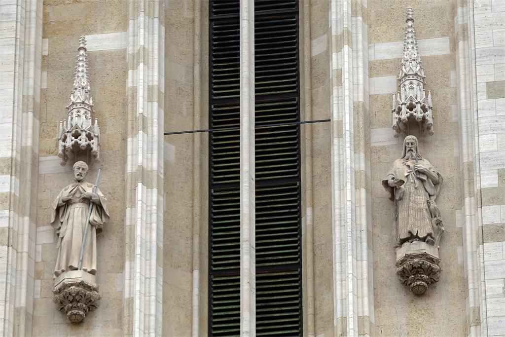 Samim time pogledu su nam se otkrili i kipovi svetaca kojima je ukrašeno pročelje katedrale i kojima se čovjek rado utječe u zagovor ili moli za pomoć kada je pritisnut kojom nevoljom ili životnom poteškoćom.