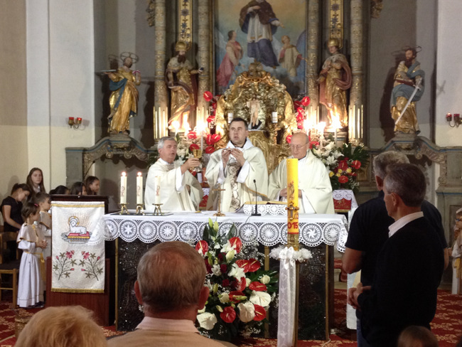 Pod svetom misom pjevao je zbor franjevačkih bogoslova koje je za orguljama pratio fra Filip Čeliković.