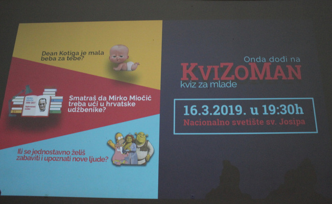 Druženje za mlade uoči svetkovine svetog Josipa, zaručnika Blažene Djevice Marije, održalo se u subotu 16. ožujka 2019. godine u prostorima Nacionalnog svetišta na Dubovcu. Mladi koji djeluju u Svetištu odlučili su svojim vršnjacima pripremiti nešto zanimljivo i novo. Tako su se upustili u organiziranje kviza za mlade pod simpatičnim nazivom Kvizoman. Uvidjevši da već neko vrijeme u Svetištu nisu imali događaj namijenjen mladima, blagdan svetog Josipa, zaštitnika grada Karlovca i čitave domovine, učinio se kao idealan povod.