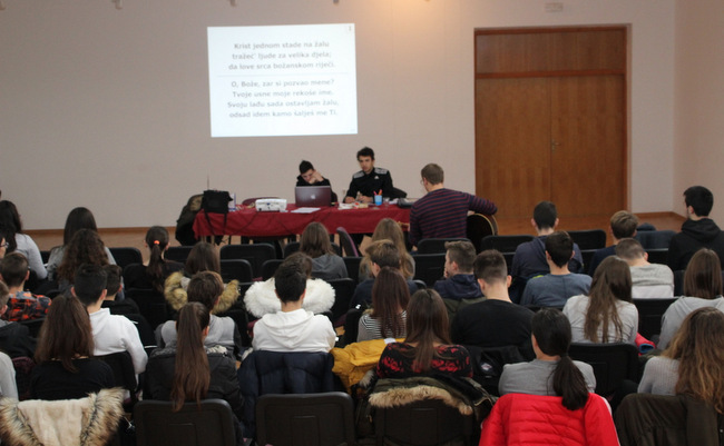 "Ovaj vikend, 1. i 2. prosinca, održala se je duhovna obnova za krizmanike. Duhovnom obnovom su nam htjeli kroz zabavu dočarati Boga i potaknuti nas na život u vjeri. Sve je počelo u subotu ujutro. Naše druženje započelo je jutarnjom molitvom i pjevanjem. Upoznali smo divne mlade ljude te čuli njihova iskustva s vjerom, a kasnije su oni bili i naši animatori. Svatko od njih nam je održano predavanje u kojem je pričao o vjeri u svom životu. Tim predavanjima su nam htjeli pokazati kako su se vratili u Crkvu i sve do danas ostali, kako bi se i neki od nas pronašli u istim ili sličnim situacijama. Bili smo podijeljeni u skupine u kojima bi nakon svakog predavanja iznijeli svoja mišljenja ili ako smo bili u sličnoj situaciji dobili smo koji dobar savjet.
