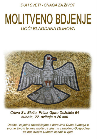 Prvo bdjenje pod geslom »Duh Sveti – Snaga za život« započinje u 20 sati u zagrebačkoj župi sv. Blaža (Prilaz Gjure Deželića 64) na kojem će se razmišljati o važnosti prepoznavanja darova Duha Svetoga u životima vjernika.