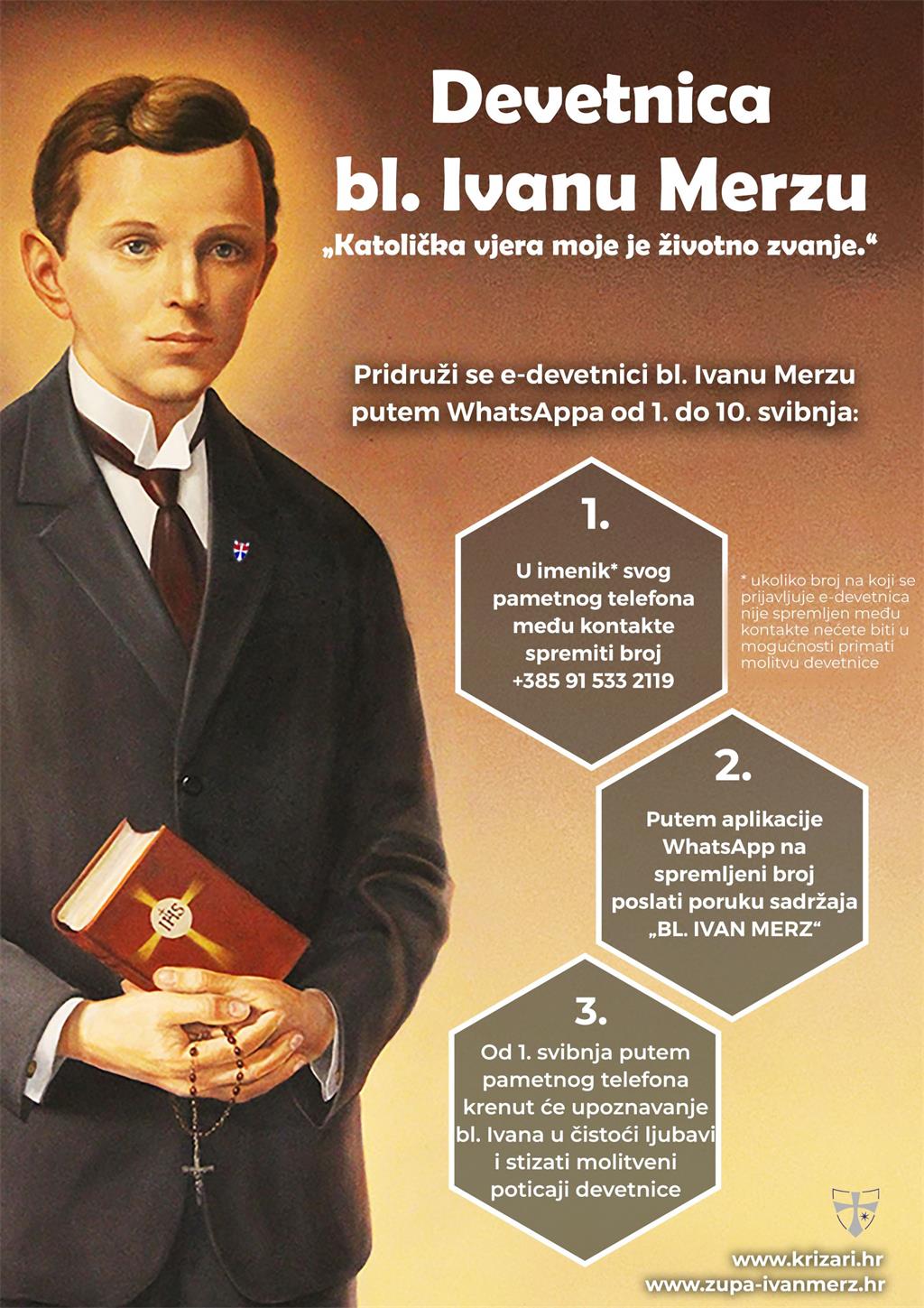e-Devetnicu bl. Ivanu Merzu uoči njegova blagdana. Svakog dana od 1. do 10. svibnja putem WhatsApp aplikacije na pametnom telefonu svi prijavljeni će primati molitvene poticaje i promišljati o Kršćanskom društvenom poretku po primjeru i životu bl. Ivana. Želja je služiti se suvremenim načinima komunikacije za otkrivanje Istine i širiti štovanje apostola hrvatske katoličke mladeži bl. Ivana Merza, upoznavati ga i zajedno s njime hoditi na putu k Suncu, a napose se, bez obzira na geografsku udaljenost, ujedinjavati u zajedničkim nakanama.
