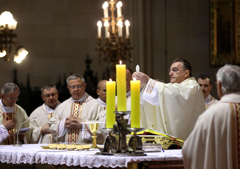 Misu Večere Gospodnje na Veliki četvrtak, 5. travnja u zagrebačkoj katedrali predvodio je zagrebački nadbiskup kardinal Josip Bozanić u koncelebraciji s pomoćnim biskupima Valentinom Pozaićem, Ivanom Šaškom i Mijom Gorskim, te kanonicima Prvostolnog kaptola zagrebačkog i prebendarima.
