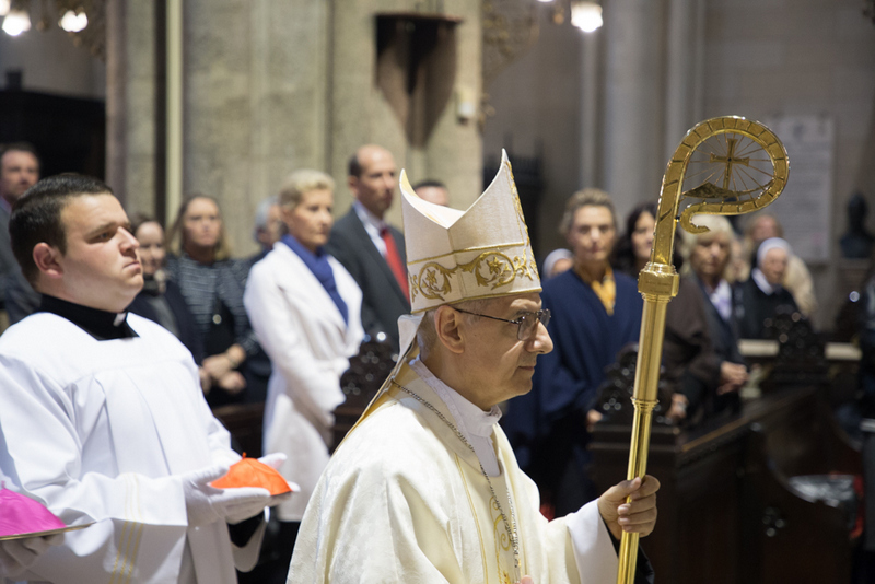 „Ovim euharistijskim slavljem i večerašnjim nastupom, apostolski nuncij nadbiskup Giuseppe Pinto predstavio se Katoličkoj Crkvi u Hrvatskoj i započeo uime Božje svoje poslanje kao predstavnik Pape Franje i Svete Stolice", rekao je nadbiskup Puljić, te je uime nazočnih biskupa još jednom izrekao iskrenu i srdačnu dobrodošlicu. Kratko se osvrnuo na posjet predsjednika Vlade Vatikanu, prigodom kojega je istaknuto da su odnosi hrvatske države i Svete Stolice dobri. „Povijest bilježi da su Crkva u Hrvata i hrvatski vladari od dolaska u ove krajeve njegovali dobre odnose s papama, te uživali i naklonost i primali njihov blagoslov". Podsjetio je, kako su zaštitu Svete Stolice Hrvati osjećali tijekom dugih stoljeća, posebice u teškim vremenima turskog osvajanja Europe, kao i polovicom 20. stoljeća u ratnim i poratnim godinama stradanja u Drugom svjetskom ratu. „Osobitu naklonost očitovao je papa Pio XII. kada je zatočenog nadbiskupa Stepinca imenovao kardinalom 1952. Blizinu, razumijevanje i zaštitu Svete Stolice osjetili smo i tijekom Domovinskog rata, kad je na Petrovoj stolici bio sv. Ivan Pavao II.".