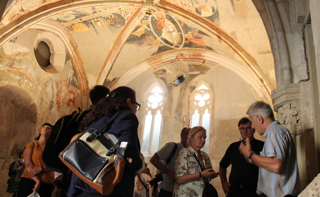 Govoreći o sačuvanim gotičkim freskama iz XIV. stoljeća koje prikazuju Kristov život a oslikao ih je nepoznati talijanski umjetnik, vjerojatno učenik slikarske škole iz Riminija, Srša se je ukazao na različite slojeve kasnijih intervencija u prostoru, te se osvrnuo na konzervatorsko-restauratorske radove u kapeli od 1949. do 1953. godine te na radove u kojima je prije desetak godina i sam sudjelovao. Ovakva kapela je izvrsna za nastavu sa studentima jer su sačuvane i prezentirane sve faze gradnje kapele, kazao je Srša ukazavši na potrebu nastavka radova, osobito sanacije vlage na ulaznom dijelu u kapelu te nastavak radova na zidnim oslicima kako bi se, uz druge potrebne intervencije, kapela osposobila za svoju funkciju.