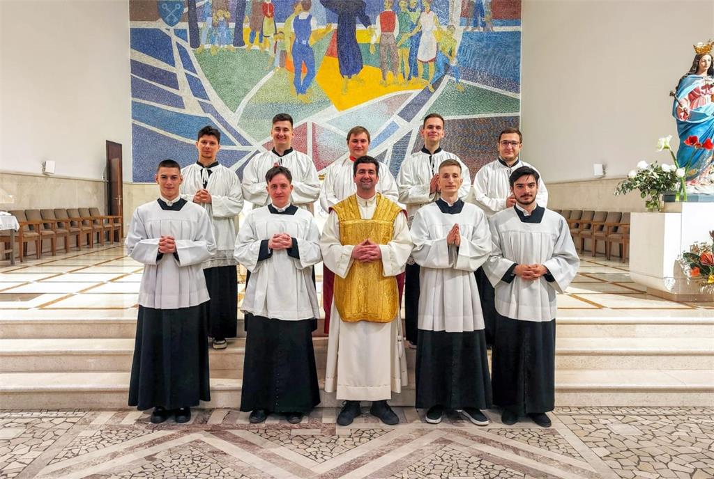 Nakon susreta, na svečanoj večernjoj svetoj misi u zbor ministranata primljena su četvorica novih odraslih članova: Matijas Bebek, Mislav Brnadić, Jakov Palić i Dino Gačić. Naime, zbor ministranata u župi podijeljen je na tri skupine: dječju (do 8. razreda), srednjoškolsku i odraslu, koje se međusobno povezuju i nadopunjuju, a cjelovitost ministrantskog služenja je u odrasloj skupini. Sam čin primanja održava se nakon šestomjesečne priprave u kojoj kandidati, uz vodstvo župnog ceremonijara i voditelja ministranata, prolaze teorijsku i praktičnu pripravu te se upoznaju sa svim službama ministriranja, liturgijskim ruhom i posuđem, organizacijom sakristije i godišnjeg liturgijskog pastorala, liturgijskim knjigama i pripremom misnih slavlja uz tumačenje liturgijskog i teološkog značenja i svakodnevnu molitvu časoslova.