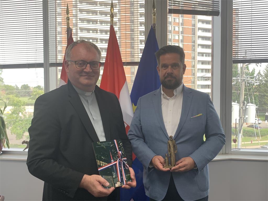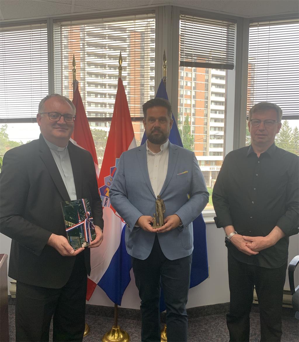 Generalni konzul Republike Hrvatske u Mississaugi Ante Jović, nadležan za pokrajinu Ontario, primio je rektora Nacionalnog svetišta sv. Josipa u Karlovcu mons. Antuna Sentea u prostorima konzulata u petak 23. lipnja 2023. godine. U pratnji mons. Sentea bio je vlč. Božidar J. Tenšek, župnik župe Hrvatskih mučenika u Mississaugi, koji je i organizirao susret.