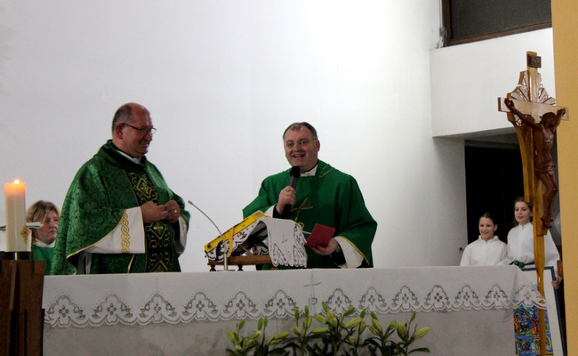 Na kraju misnog slavlja mons. Sente zahvalio je preč. Manduri što je pored svojih obveza u vojnoj kapelaniji uvijek bio spreman pomoći župama grada Karlovaca, na osobit način u Nacionalnom svetištu svetog Josipa u čijoj je neposrednoj blizini stanovao, te mu u znak zahvalnosti predao medalju izrađenu o 330. obljetnici izbora svetog Josipa za zaštitnika Hrvatske, te sliku svetog Josipa koju je izradio Josip Botteri Dini.