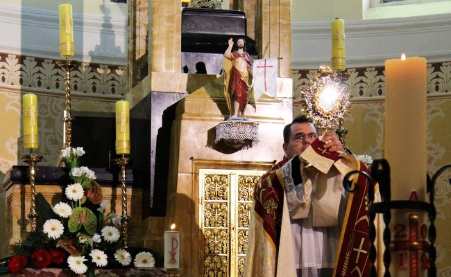 U crkvu smo ušli u poniznosti i tihoj osobnoj molitvi. Ispred nas, pred središnjim oltarom, stajao je predivan kip Djeteta Isusa. Zastajali smo pred njim, zahvaljujemo što nas je pozvaoi što smo se htjeli i mogli odazvati. Oltari su bili predivno urešeni cvijećem, a napose oltar blaženog Alojzija. Crvene ruže na tome oltaru svjedoče njegov mučenički život u Krašiću, njegovu vjeru u Boga i predanje njemu, kojeg je slavio ne samo na oltaru ove crkve već na svim oltarima gdje god je bilo prilike. Narančaste strelicije podsjećaju nas na Stepinčevu težnju za nebeskim, božjim ali i na njegovu skoru nebesku slavu.