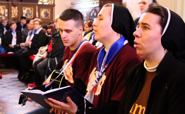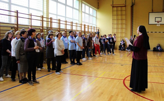 Po dolasku kao znak pripadnosti i sudioništva ovogodišnjega susreta stavili smo prigodne šalove oko vrata. Srednji dio šala je plave boje da nas podsjeti da smo djeca Božja i da je kraljevstvo Božje nad nama. Njega trebamo tražiti i njemu stremiti...“Ispod svoda ....bijaše nešto kao kamen safir. Poput prijestolja. Na tom kao prijestolju, gore na njemju kao neki čovjek“ (Ez.1, 26).