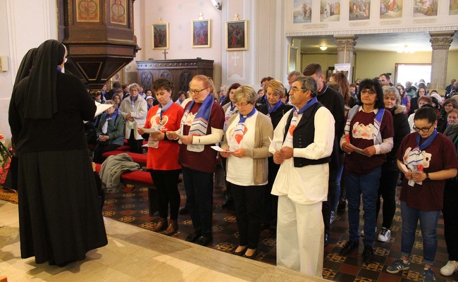 Poslije pričesti, pri samom kraju euharistijskog slavlja slijedilo je svečanos primanja novih članova PMI. Ove godine primljeno je novih 18 članova i članica. Ljudi vrlo mladi, pa srednja dob ali i onih bogatijih godina. Bilo je divno promatrati ih a neki su bili ganuti i uzbuđeni kao na Prvoj Svetoj Pričesti. I osmjeh i suze radosnice na licu. Bogu hvala na njima jer će naši molitveni susreti u župama i akcije biti bogatije idejama i rezultatima. Obred primanja predvodila je s. Petra Marjanović, provincijska glavarica sa s. Anđelinom Perić, vrhovnom savjetnicom Družbe koja je zadužena za PMI te s .Emanuelom Pečnik, provincijskom pročelnicom za PMI. Po završetku obreda primanja novih članova, obratila nam se provincijska glavarica sestra M. Petra Marjanović. Čestitala je novim članovima te se zahvalila krašičkom župniku vlč. Vučaku, sestrama SMI i onima koje djeluju u župi te PMI i mještanima Krašića na pomoći pri organizaciji i toploj dobrodošlici.