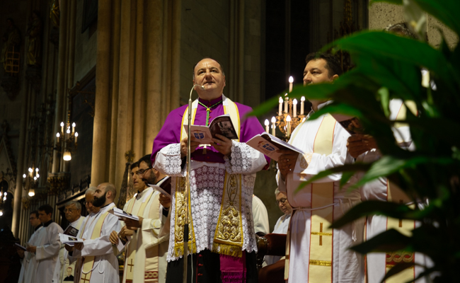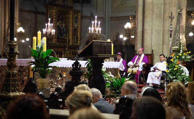 Biskup Šaško izričući dobrodošlicu hodočasnicima istaknuo je da je zagrebačka katedrala i njihov Dom u kojem će se, u ovoj Večernjoj molitvi liturgije časova u nebo poput kada, uzdizati molitva na njihove osobne nakane, nakane Hvarske Crkve i cijele naše domovine.